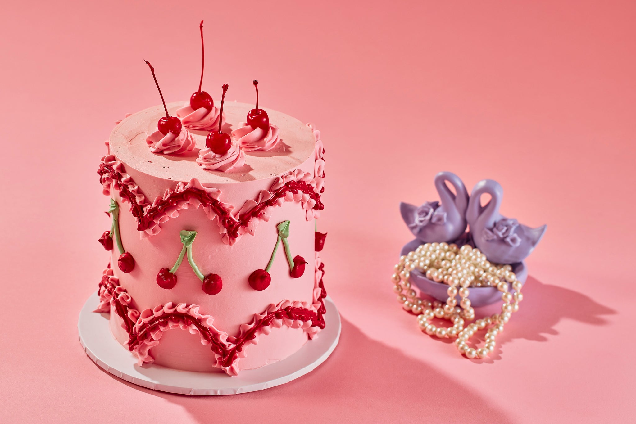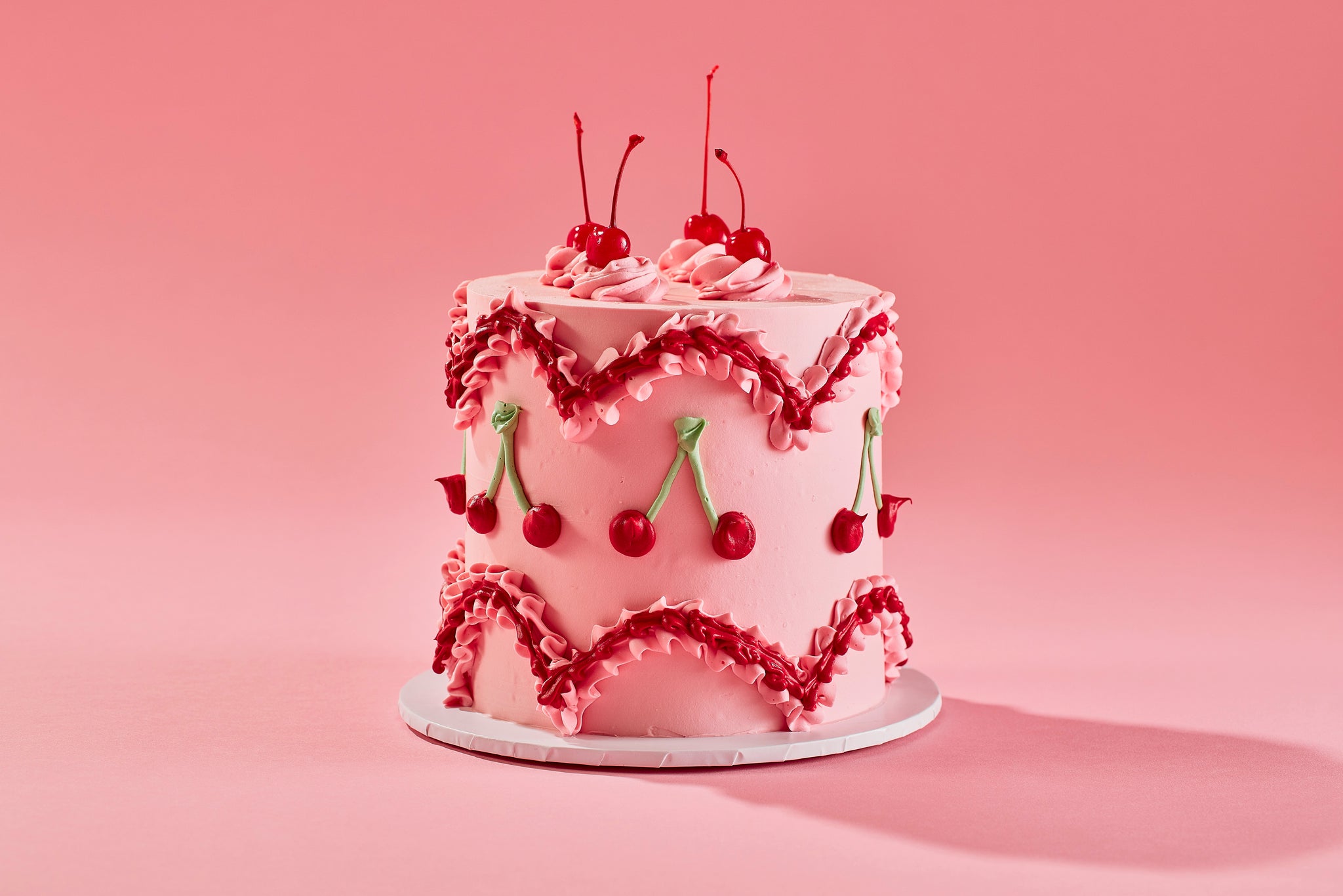 Cherries are a god tier fruit. But you can only get them for like 6 weeks of the year. Annoying. But if we pipe them on a cake, then you can have them 52 weeks of the year. A win for the cherry stans!