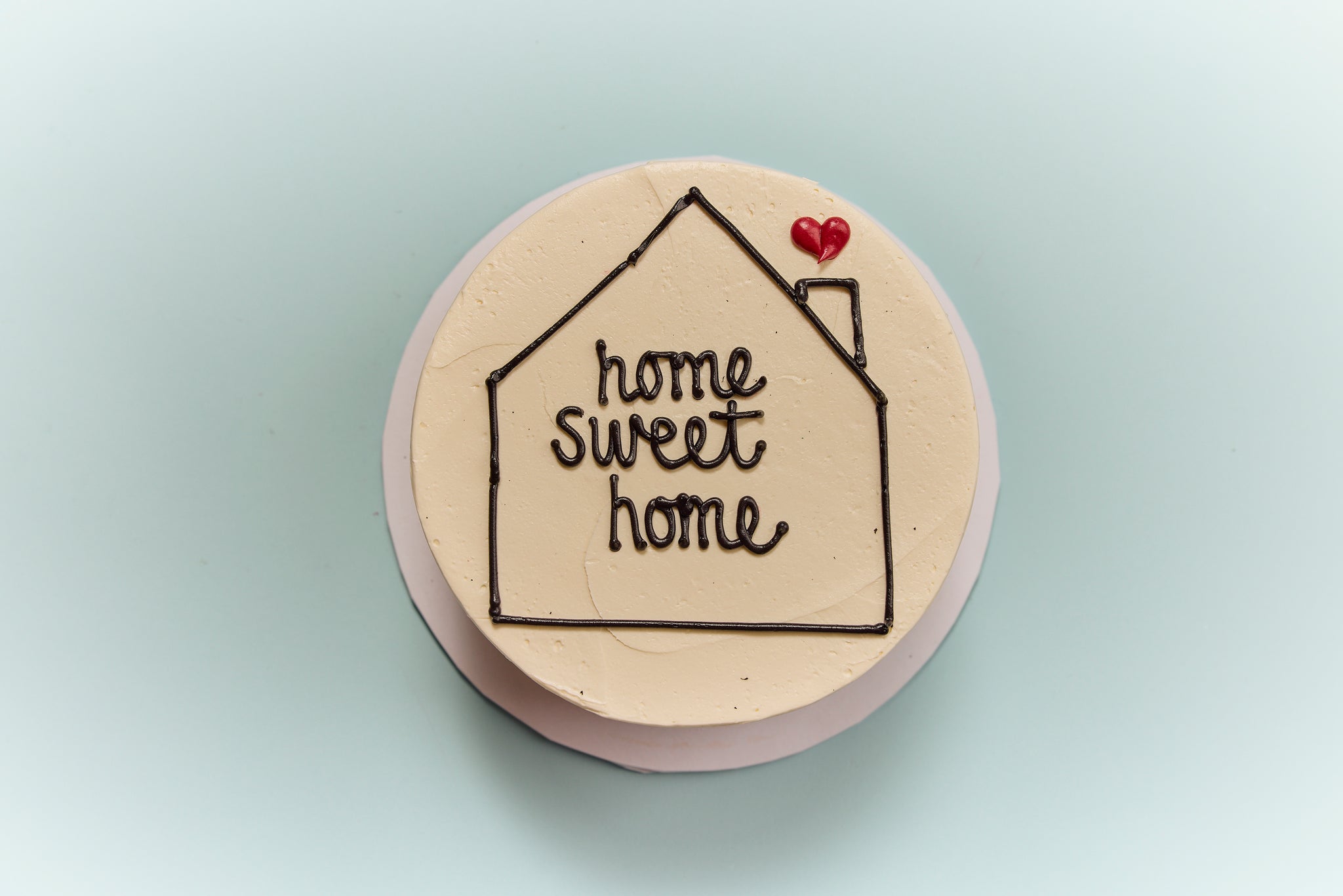 With this cake, we simply need you to pick your base colour. The lines of the house and the message you choose will be black. We can pipe whatever you wish on the cake - you mightn't want it to read 'home sweet home' - you may wish to write, welcome to the mortgage club, for instance! The heart will always be red.
