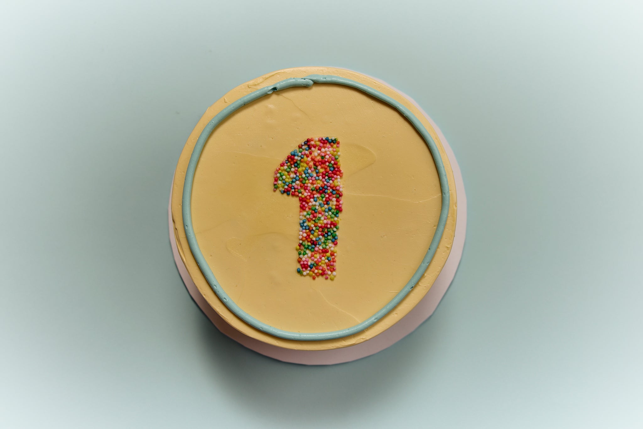 In this picture, our Number by Sprinkles is pictured with a buttery yellow base and pale blue piped edging.