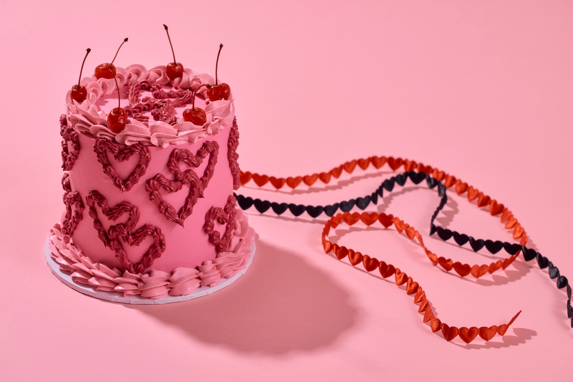 A broken heart is a sad state of affairs which makes an unbroken heart a darn joyful one. This cake features only unbroken, full hearts.