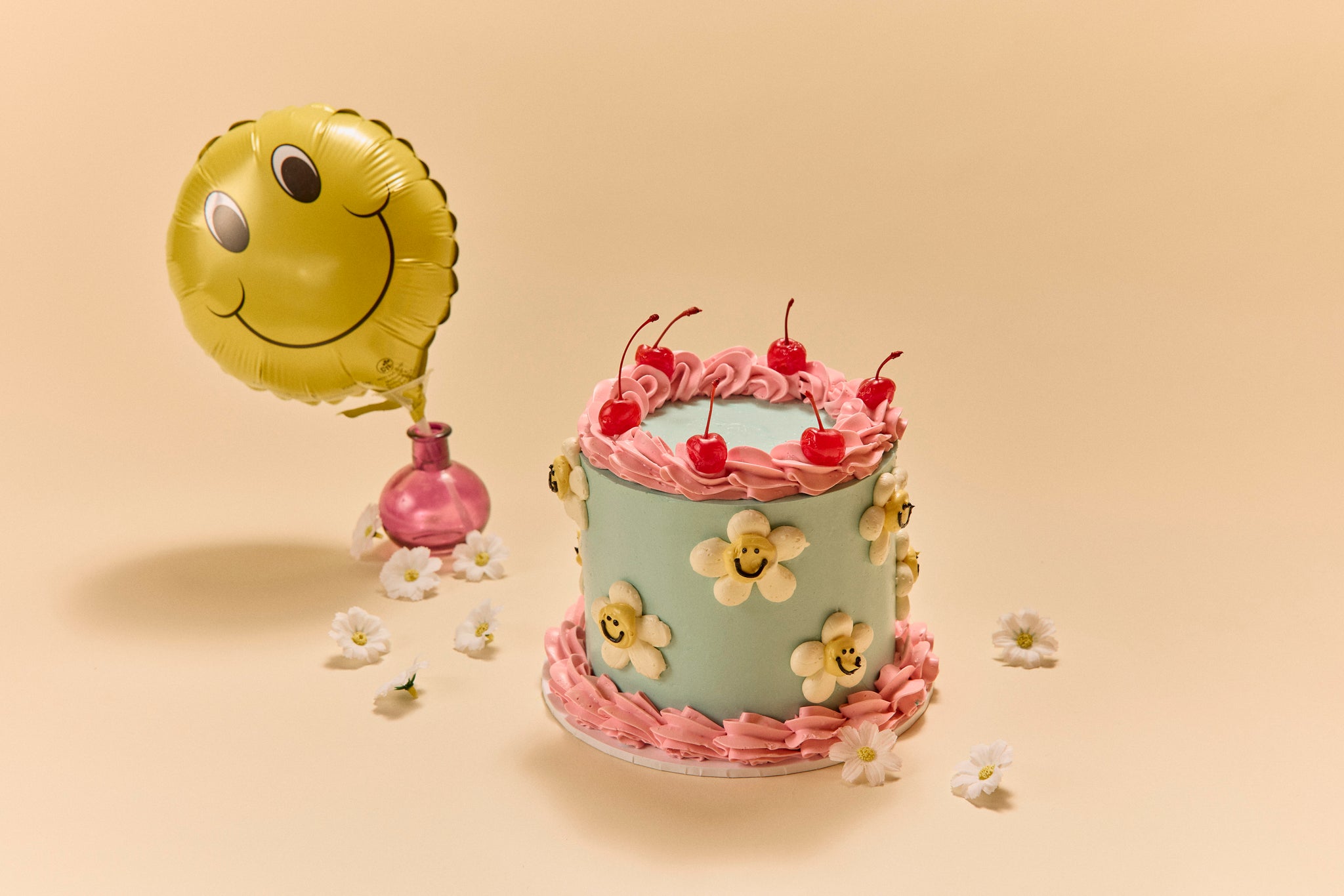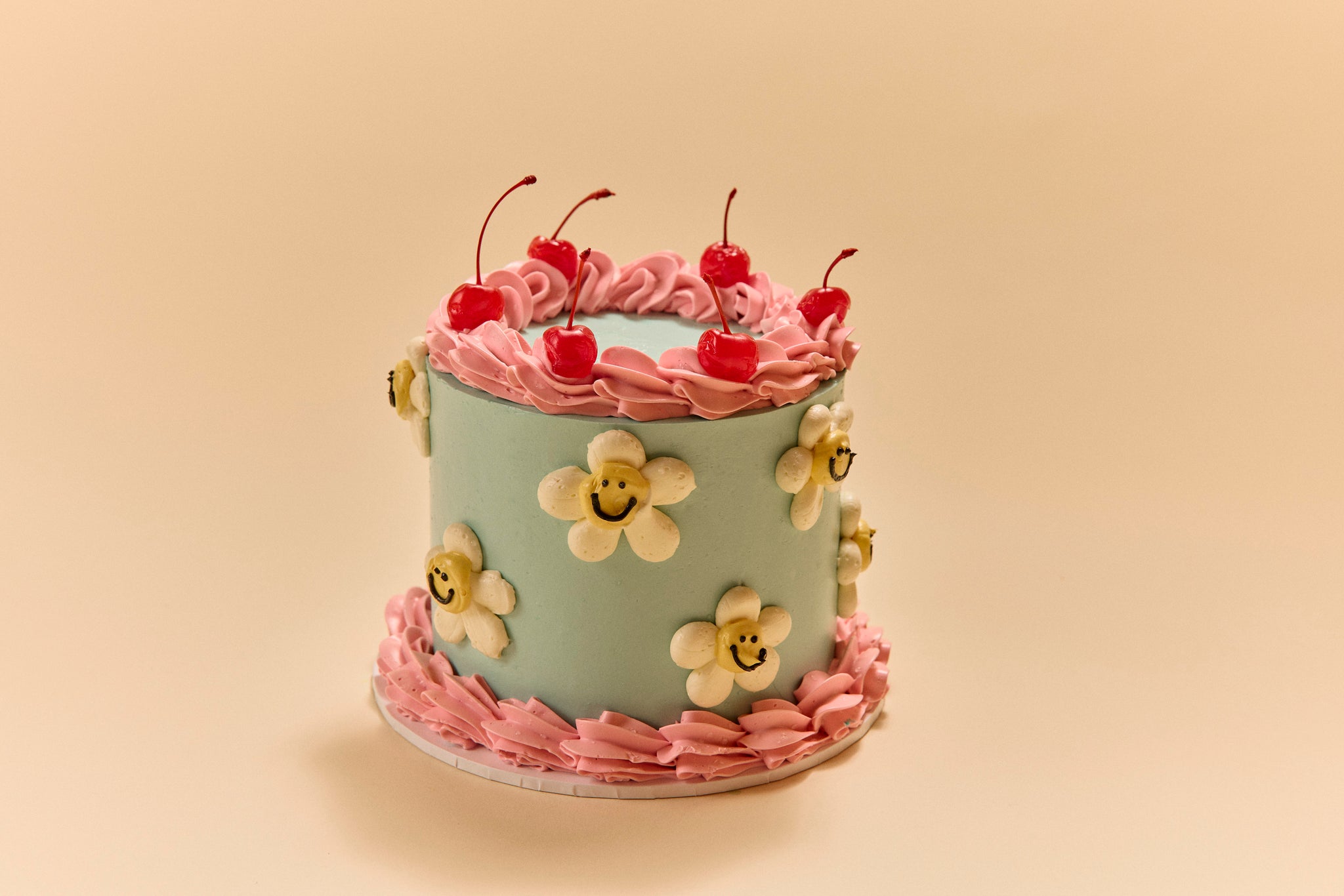 Smiling daisies? Nothing really qualifies as cuter than a bunch of smiling daisies. Especially on a cake! This cake is happy to be at a 4th, 14th or 24th birthday! Or any other birthday you deem necessary.