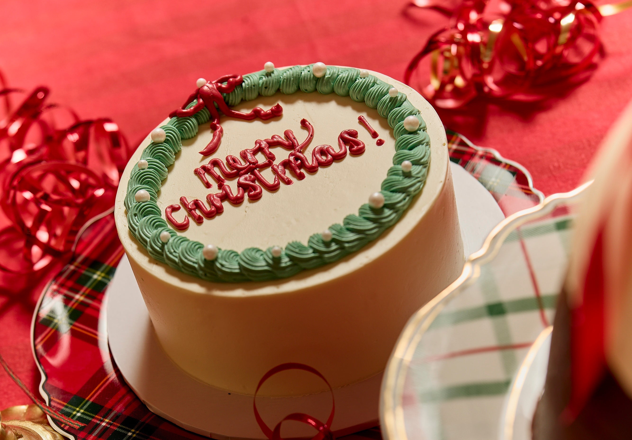 Customise this cake as you see fit! This cutie is pictured in cream - the wreath will always be green with a red bow and red writing. You can choose whatever message you'd like - just drop it in the message box.