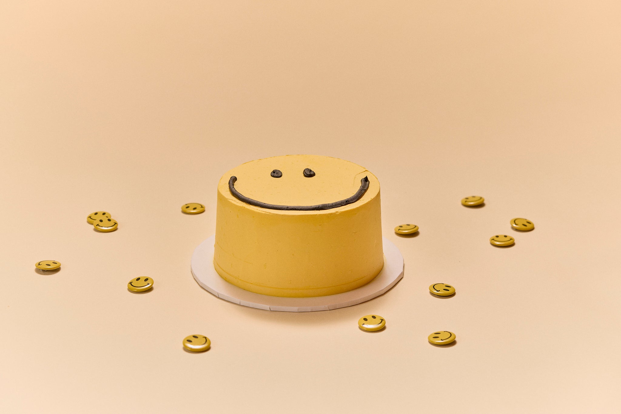 In this picture, our Hello Smile cake is pictured in buttery yellow. The black lines will always be black.